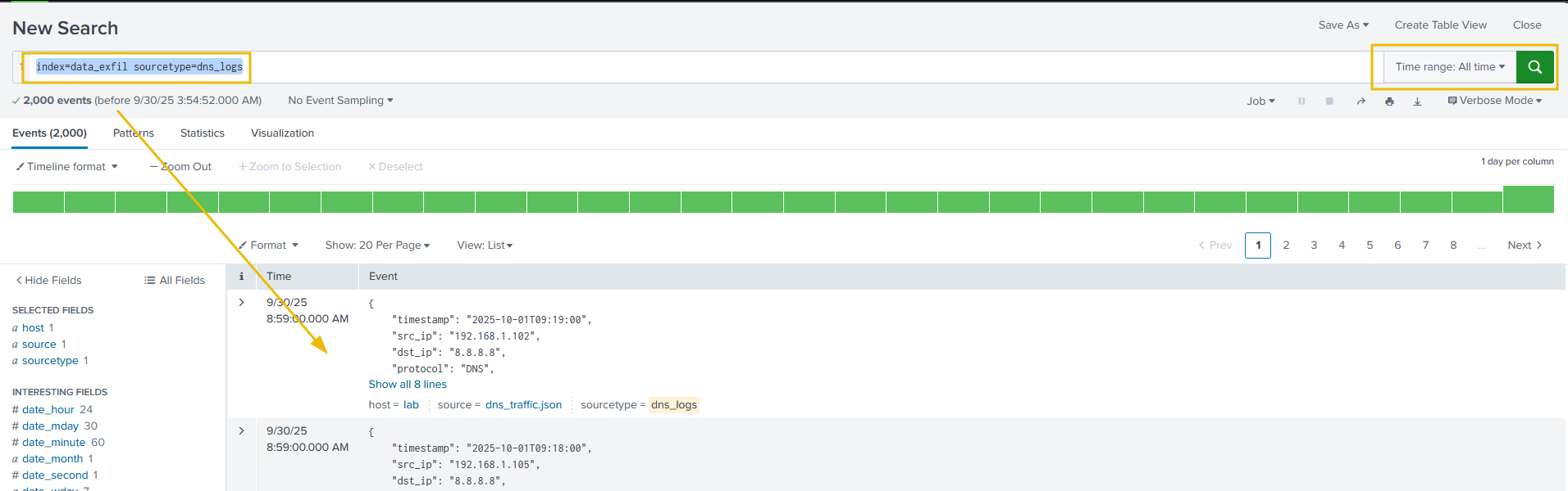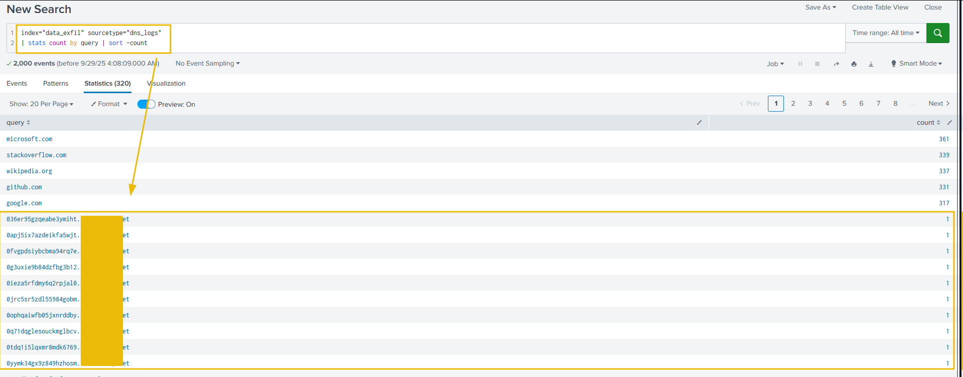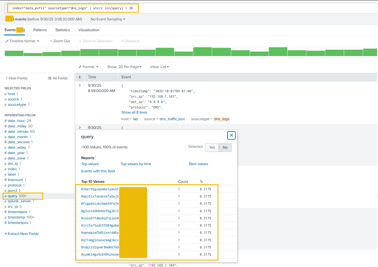 Search Query: index=data_exfil sourcetype=DNS_logs
