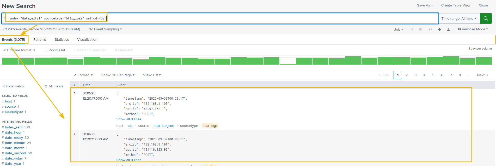Search Query: index="data_exfil" sourcetype="http_logs" method=POST